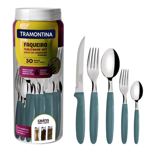 Faqueiro Tramontina Ipanema em Inox Menta com Pote Plástico 30 Peças