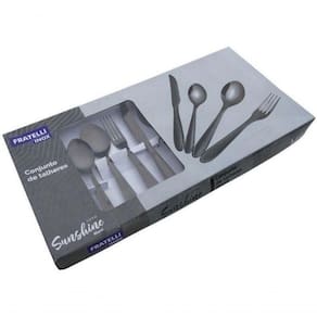 Faqueiro Jogo Talheres Black Aço Inox 24 Peças Sunshine A mesa posta tornou-se uma tendência muito forte, e com isso alguns detalhes fazem toda a diferença na hora de fazer as suas refeições. O nosso Faqueiro Black tem tudo o que você precisa para tornar esse momento único, alinhando estilo e elegância. Todo feito em aço inox garantindo a qualidade, a classe e a durabilidade. A cor Black tem o toque de classe e modernidade. Você não precisa mais de uma ocasião especial para tornar sua refeição em um momento de satisfação. O kit contém 24 peças sendo 6 garfos de mesa, 6 facas de churrasco, 6 colheres de mesa e 6 colheres de chá. Suas dimensões são: -Garfo de Mesa: Altura 21cm x Largura 2,5cm -Colher de Mesa: Altura 21cm x Largura 5cm -Faca de Churrasco: Altura 23cm x Largura 2cm -Colher de Chá: Altura 15cm x Largura 3,5cm