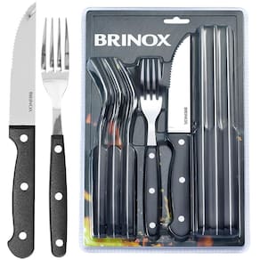 Faqueiro Jogo De Talheres Para Churrasco Jumbo Inox 8 Peças Preto Brinox 2554/308