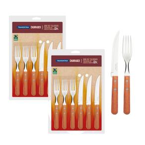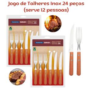Jogo de Talheres Tramontina Churrasco com Lâminas em Aço Inox e Cabos de Madeira Natural 24 Peças