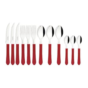 Para você compor uma mesa cheia de charme para suas refeições, precisa contar com talheres de qualidade. Por isso, o faqueiro Tramontina Leme com lâminas em aço inox e cabos de polipropileno vermelho 12 peças é uma escolha excelente. Eles são perfeitos para lhe acompanhar diariamente, seja com um filé à parmegiana, uma sopa de capeletti e uma macarronada para toda a família. Suas peças contam com lâminas produzidas em aço inox e cabos de polipropileno na cor vermelha, onde as facas contam com tratamento térmico e os garfos e colheres tem estampagem e espessura especial do aço, que garantem excelente durabilidade e alta resistência. Um jogo perfeito para quem não abre mão da praticidade e da beleza no seu dia a dia!
