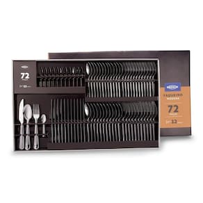 A linha Módena combina com estilo e funcionalidade, tornando cada refeição um momento único. O conjunto de talheres possui 72 peças, se adapta às reuniões mais formais e também aos momentos mais descontraídos. A linha de talheres Módena é feita de aço inoxidável, cabos arredondados e possuem um friso para trazer mais um detalhe à mesa. O faqueiro serve 12 pessoas e é composto por: Colher e garfo de mesa, faca de churrasco, colher e garfo de sobremesa, e colheres de café. Produzidos no Brasil, os talheres garante qualidade e durabilidade por muito mais tempo. Talheres com polimento extra brilho Colheres de chá e café com acabamento vibrado Espessura: 2,5 mm da faca Espessura: 1,2 mm do garfo e colher.