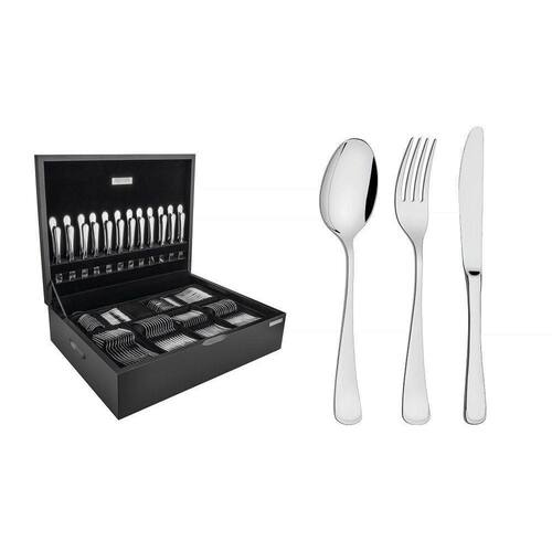 Faqueiro Mônaco em Aço Inox com Estojo de Madeira 130 Peças Tramontina 66917/227 Descrição: O Faqueiro Tramontina em Aço Inox com Facas de mesa Forjadas 6mm e Estojo de Madeira com Compartimento Retrátil Acabamento Alto Brilho com Detalhes no Cabo 130 Peças da linha Mônaco, irá proporcionar um serviço de mesa e sobremesa ainda mais elegante e surpreendente. O estojo de madeira em MDF com compartimento retrátil possibilita que as peças sejam armazenadas de forma cuidadosa. Por serem produzidas em aço inox, possibilita um alto brilho e uma durabilidade única. As colheres contam com bojo em formato simétrico e bordas cuidadosamente arredondadas, garfos com dentes polidos na parte interna, tornando o formato apropriado para a boca, as facas foram produzidas com lâminas temperadas, o que garente maior durabilidade no fio de corte serrilhado e maior resistência à corrosão. Além disso, elas podem ser lavadas diariamente na máquina de levar louças, possibilitando praticidade na higienização dos talheres. As peças são acondicionadas em um belo estojo de madeira MDF. Totalmente feitas de aço inox, altamente duráveis, mantêm suas características , preservando a beleza, a higiene e a durabilidade do material. Colheres com bojo em formato simétrico e bordas cuidadosamente arredondadas. Garfos com dentes polidos na parte interna, com formato apropriado para a boca e bordas arredondadas para proporcionar maior conforto no uso. Facas totalmente temperadas, que garantem maior durabilidade no fio de corte e maior resistência à corrosão, e por suas características de temperabilidade, não riscam as porcelanas. Acabamento em alto brilho, com detalhes no cabo. Serviço para mesa e sobremesa. Podem ser lavadas diariamente na máquina de lavar louças. Peso bruto: 15kg As peças são acondicionadas em um belo estojo de madeira MDF. Totalmente feitas de aço inox, altamente duráveis, mantêm suas características , preservando a beleza, a higiene e a durabilidade do material. Colheres com bojo em formato simétrico e bordas cuidadosamente arredondadas. Garfos com dentes polidos na parte interna, com formato apropriado para a boca e bordas arredondadas para proporcionar maior conforto no uso. Facas totalmente temperadas, que garantem maior durabilidade no fio de corte e maior resistência à corrosão, e por suas características de temperabilidade, não riscam as porcelanas. Acabamento em alto brilho, com detalhes no cabo. Serviço para mesa e sobremesa. Podem ser lavadas diariamente na máquina de lavar louças. Peso bruto: 15kg Contém: 12 Colheres de Mesa 12 Colheres para Café 12 Colheres para Chá 12 Colheres para Sobremesa 12 Facas de Mesa Forjada 12 Facas para Peixe 12 Facas para Sobremesa Forjada 12 Garfos de Mesa 12 Garfos para Peixe 12 Garfos para Sobremesa 1 Colher para Arroz 1 Concha para Molho 1 Concha Terrina 1 Pá para Açúcar 2 Talheres para Salada 2 Talheres Trinchantes para Carne 2 Talheres Trinchantes para Peixe Importante: EAN13: 7891116150665 DUN14: 17891116150662 NCM: 8215.20.00 Peso Líquido: 6,4900 kg. Peso Bruto: 12,9800 kg. Metragem: 0,043384 m³. Dimensões Embalagem Compr. X Larg. X Alt. : 580x 440x 170 mm.