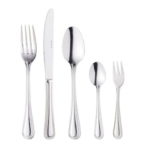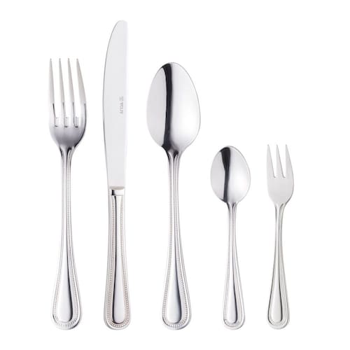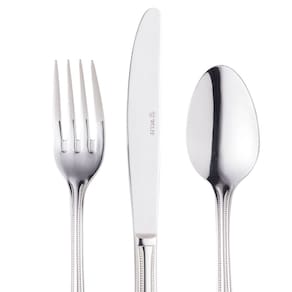 Cada peça do faqueiro apresenta o design clássico da linha Pérola, caracterizado por linhas elegantes e um acabamento impecável em aço inox.