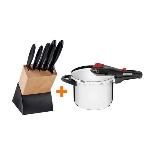 OBS: Veja na descrição os itens que acompanham o jogo.COMPONENTES DO KIT:1 - Jogo de 6 PÇ 4 facas, 1 garfo e Suporte de Madeira Plenus - Tramontina 234980281 - Panela com Fundo Triplo em Aço Inox 22 cm 6 L - Solar - Tramontina 62516223Jogo de 6 PÇ 5 pç e Suporte de Madeira Plenus Lâminas Inox Cabos Polipropileno - Tramontina 23498028- Cor do cabo: Preto- Material do cabo: Polipropileno- Peso Líquido: 1,1 kg.- Peso Bruto: 1,3 kg.- Dimensões Produto: 30cm A x 12cm L x 21cm C.- Dimensões Embalagem 31cm A x 13cm L x 22cm C.- Conteúdo do jogo:1 - 29900500 - Base de Madeira1 - 23426007 - Faca Chef Lâmina 7 17,78cm 1 - 23425005 - Faca Desossar Lâmina 5 12,7cm 1 - 23420003 - Faca para Legumes e FrutasLâmina 3 7,62cm 1 - 23428005 - Faca para Tomates Lâmina 5 12,7cm 1 - 23432000 - Garfo TrinchantePanela com Fundo Triplo em Aço Inox 22 cm 6 L - Solar - TramontinaCód. 62516223- Mais praticidade e qualidade na sua cozinha- Produzida em aço inox- Pode ser utilizada em fogão a gás, elétrico, vitrocerâmico ou por indução- Cabo e alça antitérmicos- Fundo triplo: aço inox, alumínio, aço inox- Distribuição de calor uniforme, cozimento rápido e economia de energia- Alimentos aquecidos por mais tempo- Sistema de descompressão- Medidor de capacidade interno- 5 dispositivos de segurança- Capacidade mínima: 250ml de líquido 1/4 litro - Capacidade máxima: 2/3 da capacidade total da panela alimento + líquido - Atestada pela Norma Nacional de Segurança / INMETRO- Acompanha manual de instruçõesCapacidade da panela: 6 litrosPressão de trabalho: 80/95 kPaPeso líquido: 3,06 kgPeso bruto: 3,85 kgMedidas do produto: 23,1cm A x 24,7cm L x 45cm PDiâmetro da panela: 22cmMedidas da embalagem: 25,4cm A x 27,2cm L x 44,1cm PGarantia de 2 anos contra defeito de fabricação. Marca: Não Informado Ean: 7890100015836
