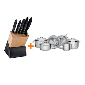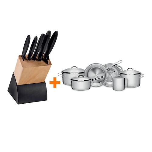 Jogo de 6 PÇ 5 pç e Suporte de Madeira Plenus Lâminas Inox Cabos Polipropileno - Tramontina 23498028