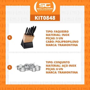1 - Jogo de 6 PÇ 4 facas, 1 garfo e Suporte de Madeira Plenus - Tramontina 23498028