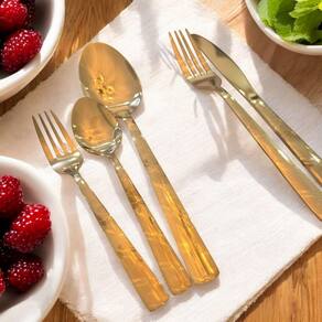 Cada talher, incluindo colheres, facas e garfos, possui um design requintado que se destaca em qualquer ocasião, desde jantares formais até almoços em família. O material de alta qualidade garante durabilidade e resistência, tornando-o uma escolha perfeita para o dia a dia e para eventos especiais.