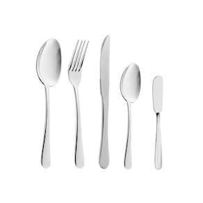 Contem: 6 Garfos de Mesa Medidas: 20 x 2,5 x 0,25 cm 6 Colheres de Mesa Medidas: 20 x 4,2 x 0,25 cm 6 Facas de Mesa Serrilhada Medidas: 23 x 2 x 0,4 cm 6 Espatula para Manteiga Medidas: 15 x 1,5 x 0,15 cm 6 Colheres de Sobremesa Medidas: 18 x 4 x 0,25 cm Material: Aço Inoxidavel Pode ser levado a maquina de lavar louças