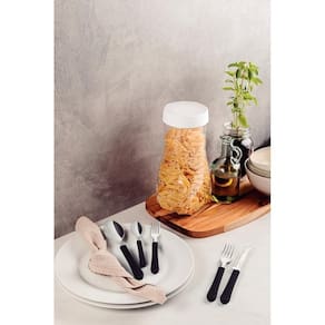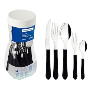 Tipo de embalagem: Pote | Material do cabo: Plástico | Modelo detalhado: Leme | Marca: Tramontina | Modelo: Leme | Material da lâmina: Aço Inox | Fonte do produto: Tramontina | Linha: Leme | Condição do item: Novo | Talheres incluídos: Garfo, Faca, Colher e Colher de Chá | É kit: Não | Cor: Inox | Unidades por kit: 20 Cor: Preto