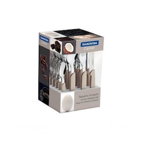 Para quem gosta de fazer bonito em todas as ocasiões, sejam elas parte da rotina diária ou um momento especial, o faqueiro Tramontina Carmel com lâminas em aço inox e cabos de polipropileno natural médio 24 peças leva a beleza dos produtos da linha Carmel, que foi pensada para proporcionar leveza e alegria, seja na hora do almoço ou do jantar. O faqueiro conta com garfos, facas para churrasco, colheres e colheres de chá produzidas com lâminas em aço inox e espessura que mantém formas inalteradas mesmo com uso intenso. Os cabos são produzidos em polipropileno com diversas opções de cores, oferecendo um manuseio confortável e . O fio das facas tem maior durabilidade, pois as lâminas em aço inox recebem tratamento térmico. Você notará a diferença da sua mesa desde o primeiro uso.
