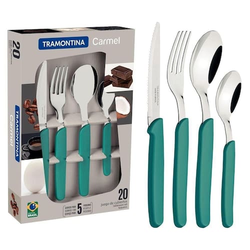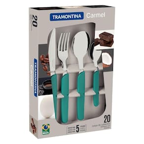Aprecie momentos muito mais descontraídos à mesa, com o Faqueiro Tramontina Carmel com Lâminas em Aço Inox e Cabos de Polipropileno Turquesa Médio 20 Peças. É composto por facas para churrasco, colheres para chá e garfos e colheres de mesa, talheres essenciais para as principais refeições. Todos são produzidos com lâminas em aço inox e cabos de polipropileno, características que permitem que sejam lavados na máquina de lavar louças. Os talheres certos para quem ama aliar refeições saborosas e mesas muito mais bonitas!