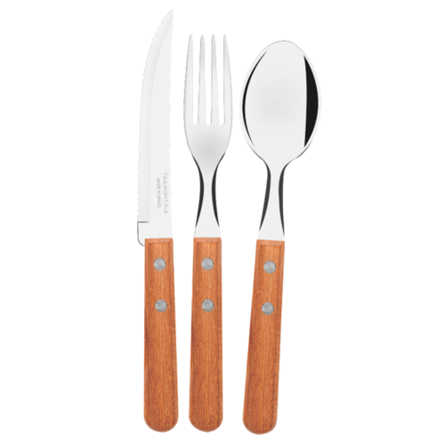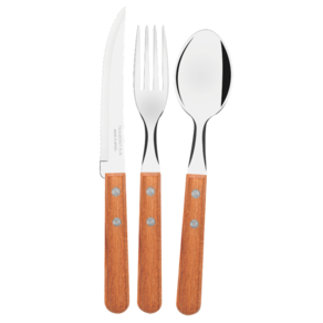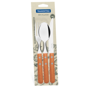 O Faqueiro Tramontina Dynamic com Lâminas em Aço Inox e Cabos de Madeira Natural 3 Peças é a melhor escolha para deixar o ambiente mais rústico. Com serviço para uma pessoa ele traz faca para churrasco, colher e garfo para facilitar as refeições e tornar o dia a dia mais prático. Os talheres possuem cabos de madeira natural que garantem um visual moderno e diferenciado, além de ter rebites de alumínio. Possuem lâminas de aço inox que apresentam maior durabilidade e resistência. Um faqueiro especial, pensado especialmente em você! Orientações Lâminas de aço inox. A lâmina da faca tem maior durabilidade do fio devido ao tratamento térmico. As lâminas do garfo e colher contam com maior espessura e uma estampagem do aço que garante maior resistência, evitando deformações. Os cabos são de madeira naturalRebites de alumínio. Características Gerais EAN13 7891112017269 DUN14 17891112017266 NCM 8215.20.00 Peso Líquido 0,0900 kg. Peso Bruto 0,1030 kg. Metragem 0,000318 m³. Dimensões Embalagem (Compr. X Larg. X Alt.) 16x 78x 255 mm. Observações Antes da primeira utilização, lave bem as peças e seque-as. Tenha cuidado ao manusear produtos cortantes e perfurantes e mantenha-os fora do alcance de crianças. Para maior durabilidade dos produtos, recomenda-se secar bem antes de guardar.Para descarte dos produtos e embalagens siga as orientações de reciclagem vigentes.