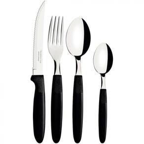Caracteristicas: Laminas de aco inox As laminas das facas tem maior durabilidade do fio devido ao tratamento termico Os garfos e colheres garantem maior resistencia devido a espessura do aco e a estampagem das laminas Os cabos de polipropileno possuem maior resistencia e durabilidade Podem ir a maquina de lavar loucas facilitando seu dia a dia
