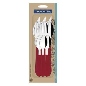 Faqueiro Tramontina Leme com Lâminas em Aço Inox e Cabos de Polipropileno Vermelho 12 Peças