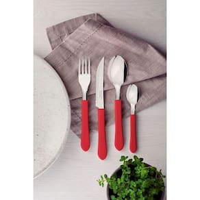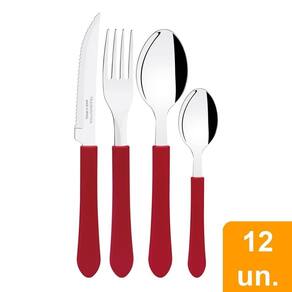 Informações Adicionais: As lâminas das facas têm maior durabilidade do fio devido ao tratamento térmico. Os garfos e colheres garantem maior resistência devido a espessura do aço e a estampagem das lâminas. Os cabos de polipropileno possuem maior resistência e durabilidade. Podem ir à máquina de lavar louças facilitando seu dia a dia. Recomendações de Uso: Antes da primeira utilização, lave bem as peças e seque-as. Tenha cuidado ao manusear produtos cortantes e perfurantes e mantenha-os fora do alcance das crianças. Para maior durabilidade dos produtos recomenda-se secar bem antes de guardar, mesmo após lavagem em máquina. Para descarte dos produtos e embalagens siga as orientações de reciclagem vigentes.