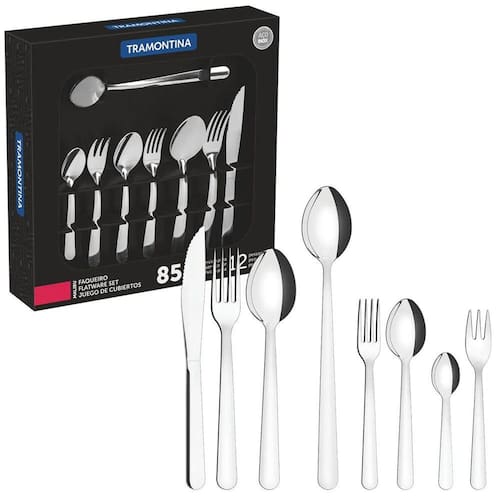 Faqueiro Tramontina Malibu 85 Peças Aço Inox Jogo de Talheres Serve 12 Pessoas