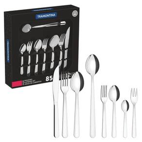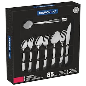 Faqueiro Tramontina Malibu em Aço Inox 85 Peças Uma mesa posta é essencial para tornar suas refeições mais especiais e proporcionar a elas muita qualidade e estilo. Para isso, conte com o faqueiro Tramontina Malibu em aço inox 85 peças. Totalmente produzidas em aço inox, suas peças mantém a beleza, a higiene e a durabilidade, tendo as lâminas das facas com tratamento térmico e os garfos e colheres espessura especial do aço e a estampagem das lâminas, características que garantem maior resistência e durabilidade. O faqueiro ainda pode ir à máquina de lavar louças e vai tornar seu dia a dia na cozinha muito mais fácil! Talheres produzidos em aço inox que mantém a beleza, a higiene e a durabilidade. Lâminas das facas com maior durabilidade do fio devido ao tratamento térmico. Garfos e colheres que garantem maior resistência devido a espessura do aço e a estampagem das lâminas. Podem ir à máquina de lavar louças facilitando seu dia a dia. Cuidados com o produto Antes da primeira utilização, lave bem as peças e seque-as. Tenha cuidado ao manusear produtos cortantes e perfurantes e mantenha-os fora do alcance de crianças. Para maior durabilidade dos produtos, recomenda-se secar bem antes de guardar, mesmo após lavagem em máquina.Para descarte dos produtos e embalagens siga as orientações de reciclagem vigentes. Garantia 90 dias para vícios ou defeitos de fabricação.