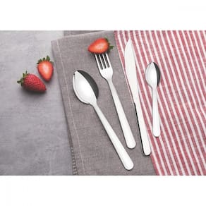 Os talheres são produzidos em aço inox que mantém a beleza, a higiene e a durabilidade. As lâminas das facas têm maior durabilidade do fio devido ao tratamento térmico. Os garfos e colheres garantem maior resistência devido a espessura do aço e a estampagem das lâminas. Podem ir à máquina de lavar louças facilitando seu dia a dia.