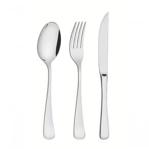 Modo de uso: antes da primeira utilização, remova as eventuais etiquetas e lave com água quente, detergente e esponja macia. Outros tipos de produto como palha de aço, poderão riscar ou prejudicar o acabamento da peça. Enxágue cada item a fim de remover totalmente os resíduos dos produtos de limpeza, que, por serem abrasivos, podem danificar o inox. Sempre que possível, use água quente, pois renova o brilho da peça. Enxaguar e secar bem a peça após a lavagem, caso contrário, as substâncias químicas da água (cloro) poderão causar manchas. Evite atrito entre as peças durante o processo de lavagem e no armazenamento, para mantê-la sem riscos. Na máquina de lavar louças não carregue em demasia a cesta dos talheres. Separe bem as peças, pois o permanente entre elas, durante a secagem, poderá causar manchas. Retire os talheres logo que tenha terminado o ciclo enxaguar, a fim de que eles sejam secados manualmente. Evite o do produto com superfícies quentes, pois elas provocam a descoloração do material. Não guarde a peça em locais úmidos. A umidade também provoca manchas. Para manter o brilho, a Tramontina desenvolveu uma pasta especial para polir e remover manchas nos produtos de aço inox, que está disponível nos principais pontos de venda (94537000).- Tenha cuidado ao Manusear produtos cortantes e perfurantes e mantenha-os fora do alcance de crianças.- Foto meramente ilustrativa.