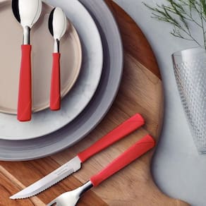 Garanta praticidade e estilo às suas refeições com o Faqueiro New Kolor Tramontina Vermelho com 24 Peças com lâminas em aço inox e cabos de polipropileno vermelho. Com design funcional e moderno, oferece garfos, colheres e facas de alta qualidade. As lâminas em aço inox garantem durabilidade e resistência à corrosão, enquanto as facas possuem lâminas temperadas, proporcionando excelente desempenho no corte. Os cabos de polipropileno são ergonômicos e confortáveis, permitindo um manuseio seguro e preciso. Além disso, as peças são fáceis de limpar e podem ser levadas à lava-louças, tornando suas refeições ainda mais práticas e elegantes. Marca: Não Informado Ean: 7891112349483
