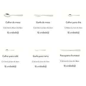 CONTEÚDO DO JOGO - 12 Colher de Mesa Pacific em Aço Inox - 12 Garfo de Mesa Pacific em Aço Inox - 12 Colher para Chá Pacific em Aço Inox - 12 Colher para Café Pacific em Aço Inox - 12 Garfo para Torta Pacific em Aço Inox - 12 Faca para Churrasco Pacific em Aço Inox