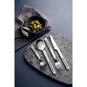 Talheres produzidos em aço inox que mantém a beleza, a higiene e a durabilidade. Lâminas das facas com maior durabilidade do fio devido ao tratamento térmico. Garfos e colheres que garantem maior resistência devido a espessura do aço e a estampagem das lâminas. Cabos com detalhes em polipropileno.Podem ir à máquina de lavar louças facilitando seu dia a dia.