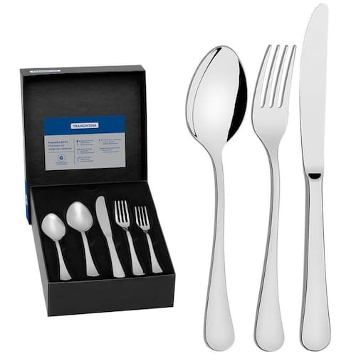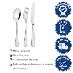 FAQUEIRO TRAMONTINA ZURIQUE EM AÇO INOX COM FACAS DE MESA FORJADAS ACABAMENTO BRILHO 30 PEÇAS 66986190
