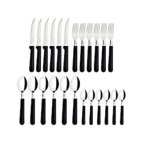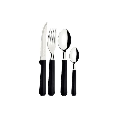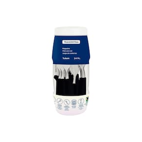 Faqueiro Tulum Com Lâminas Em Inox E Cabos De Polipropileno Preto 24pçs - Tramontina Faqueiro Tulum com Lâminas em Inox e Cabos de Polipropileno Preto 24pçs - TramontinaFaqueiro Tramontina Tulum com Lâminas em Aço Inox e Cabos de Polipropileno Preto 24 PeçasLâminas de aço inox. Lâminas das facas com maior durabilidade do fio devido ao tratamento térmico. Garfos e colheres que garantem maior resistência devido a espessura do aço e a estampagem das lâminas. Os cabos de polipropileno possuem maior resistência e durabilidade. Podem ir à máquina de lavar louças facilitando seu dia a dia.O faqueiro Tramontina Tulum com lâminas em aço inox e cabos de polipropileno preto 24 peças é um coringa para a composição da sua mesa e irá compor bem com qualquer estilo de louça. Todas as peças são desenvolvidas com lâminas em aço inox com cabos de polipropileno. As facas tem tratamento térmico e garantem alta durabilidade no fio de corte e os garfos e colheres contam com estampagem e espessura, fazendo que sejam resistentes e duráveis. Os cabos são em polipropileno na cor preta, garantem modernidade para sua mesa e podem ir à máquina de lavar louças, facilitando seu dia a dia na cozinha!Fabricante: Tramontina meli_shipping_mode - Sim Sim Fabricante - Tramontina Modelo - 23299/089