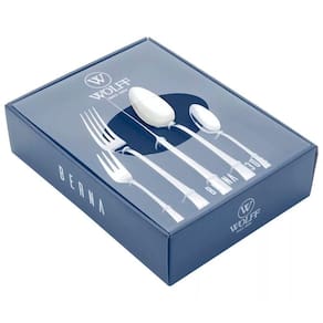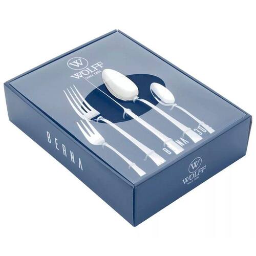 O faqueiro Berna da marca Wolff é uma combinação perfeita de elegância e praticidade. Composto por 30 peças de aço inoxidável, garantindo durabilidade por muitos e muitos anos. O acabamento e polimento das linhas contemporâneas e sofisticadas deste jogo de talher encantam a qualquer um. Você consegue ver o cuidado e a qualidade nos mínimos detalhes. Um faqueiro de luxo para complementar a beleza, o luxo e o requinte da sua mesa posta, vai marcar presença e certamente não passará despercebido entre seus convidados, sendo certamente a estrela da sua mesa de almoço ou jantar!