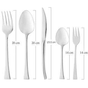 - 6 Colheres de Chá: 14 cm e espessura 2,5 mm.