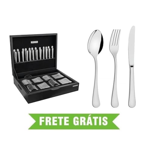 Faqueiro Zurique em Aço Inox com Facas de Mesa Acabamento Alto Brilho com Estojo de Madeira 101 Peças Tramontina - Na sua casa