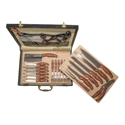 1 faca de trinchar 32x3,7cm : recomendada para cortar grandes pedaços de carne crua ou assada.