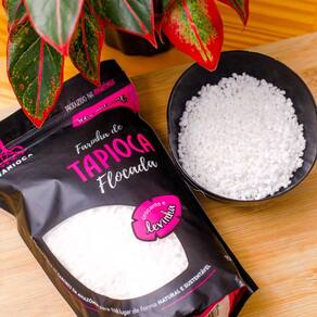 Feita a partir do amido da mandioca, aquecido até pipocar, tem aparência e textura única. É a fiel companheira do açaí e muito utilizada na elaboração de pratos doces ou também para empanar, substituindo o trigo.