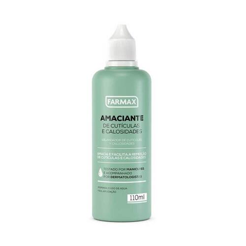Farmax Amolecedor De Cutículas E Calosidades 110ml DESCRIÇÃO:Amolecedor de Cutículas e Calosidades Farmax é desenvolvido para auxiliar no processo de cuticulagem, deixando as cutículas e calos macios e fáceis de serem removidos. AÇÃO/ATIVOS:Sua fórmula é enriquecida com ativos amacia e facilita a remoção de cutículas e calosidades, dispensando o uso de água. Imagem meramente ilustrativa. O produto pode ter variação de cor ou desenho, porém as características gerais são as mesmas especificadas na descrição do produto.MODO DE USAR:Envolva as pontas dos dedos com algodão e aplique o produto sobre as cutículas. Aguarde de 10 a 20 segundos. Em calosidades, aplique diretamente sobre a parte afetada e aguarde até 3 minutos, dependendo da sensibilidade. Nos casos excessivos de calosidades, use o produto com água morna.ESTE KIT CONTÉM: 01 UNIDADE DE FARMAX AMOLECEDOR DE CUTÍCULAS E CALOSIDADES 110MLFarmax Amolecedor de CutÃculas e Calosidades 110ml