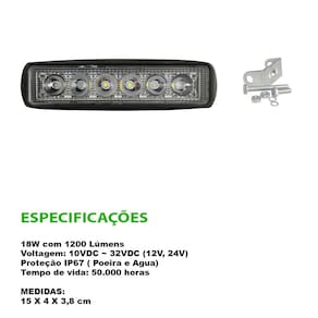 Farol Agrícola de Led Work Ligth - 18W - Retangular - 06 Leds - 1200 Lúmens
