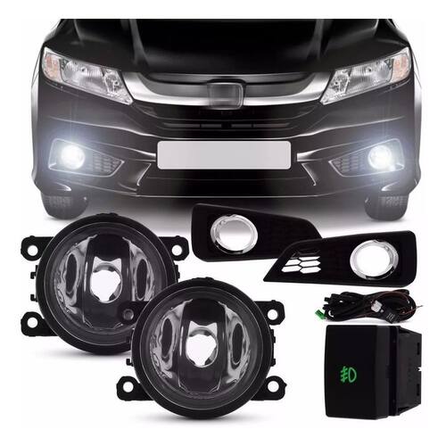 características: - de ótima qualidade; -lente lisa de vidro. Especificações técnicas: -regulagem de foco manual; -encaixe de lâmpada h11; -suporta lâmpadas até 55 watts. Conteúdo da embalagem: -2 faróis de milha; -2 molduras -1 relê; -1 chicote elétrico; -1 botão modelo. Compatível com os modelos: -city 2015; -city 2016; -city 2017. Valor anunciado é referente ao kit.