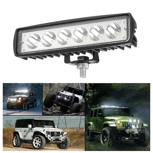 Farol de milha 6 Leds 18w Led Retangular Universal Branco Frio Carro Moto Off Road Trator Caminhao Onibus Suv Trilhas - Lado Direito e Lado Esquerdo
