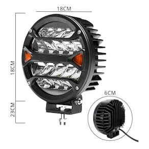• Potência: 90W; • Tensão: 12V / 24V; • Material da Carcaça: Alumínio Fundido; • Material da Lente: Policarbonato; • Possui proteção IP67 (resistente a água mas não impermeável, recomendamos passar um silicone de proteção nos contornos da lente para melhorar a vida útil do produto, pois ele não é totalmente à prova d'água); • Cor da Carcaça: Preto; • Cor da Luz: Branco e Âmbar • Alcance da Luz: em torno de 300m • Ângulo de feixe Spot: 30° graus; • Fluxo Luminoso: 8100 Lumens; • Taxa aprova d'água: IP67; • Tempo de Vida: Mais de 30.000 Horas; • Temperatura de Cor: 6000K; • Tipo de Conector: Cabo.