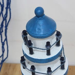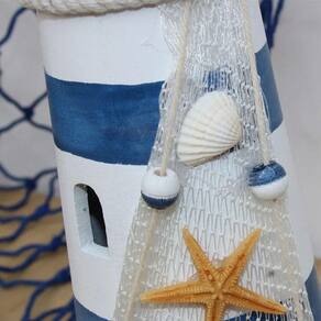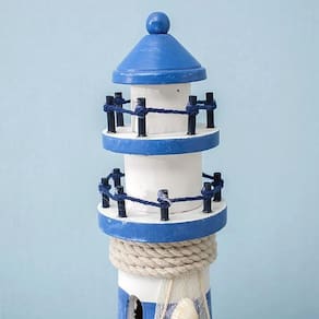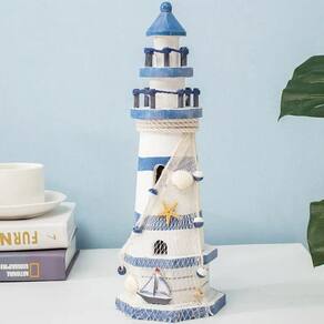 Farol Enfeite Decorativo Náutica Oceano Branco e Azul 30cm -
