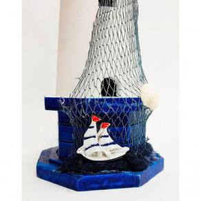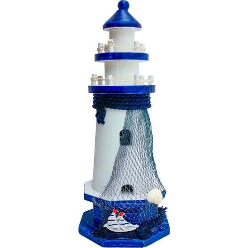 Farol Enfeite Decorativo Náutico Marítimo Branco e Azul 30cm