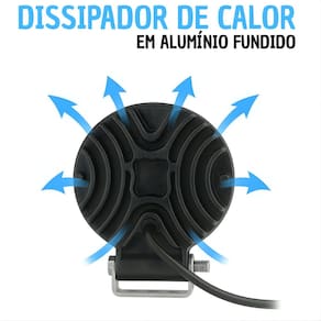 Especificações: - Lente em Acrílico - Carcaça em Alumínio Fundido - Farol com LEDs Integrados - Possui 9 LEDs de Alta Intensidade - Temperatura de cor: 6000K (branco) - Fluxo Luminoso: 2400 Lúmens - Potência de Cada LED: 3W x 9 - Potência Total: 27W - Alimentação: 10V/30V - Voltagem Compatível com Carros, Motos, Caminhões e Implementos Agrícolas - Alta Durabilidade - IP Rate: IP68 resistente a água e poeira - Composição: Alumínio Fundido, Plásticos PS / PMMA / PC, Aço Inox, Fio de Cobre e Componentes Eletrônicos - Observação: Carcaça Grossa Alumínio