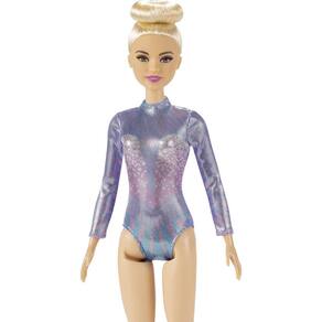 Boneca de moda e acessórios Barbie Careers, ginasta rítmica com cabelos loiros e olhos castanhos usando um collant cintilante com bastão e fita