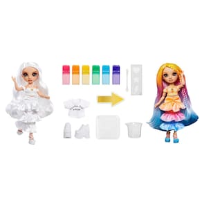 - O QUE ESTÁ INCLUÍDO: 1 boneca moderna exclusiva com roupa e sapatos de boneca totalmente brancos, blusa de boneca bônus, tênis bônus para bonecas, 6 aquarelas laváveis em arco-íris, esponja de aplicação dupla, elásticos, estêncil, copo medidor, tigela descartável, colher e pente.