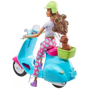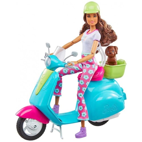 As crianças podem aproveitar as férias dos seus sonhos com esta boneca de viagem Barbie Fashionistas, seu cachorrinho de estimação e uma scooter perfeita para explorar a cidade. Prenda a boneca Barbie na scooter e coloque o cachorrinho na cesta, depois empurre para começar a história com rodas rolantes e detalhes realistas. A boneca Barbie está pronta para qualquer aventura em uma camiseta moderna com um gráfico LOVE, calça flare com estampa de flores e elegantes tênis de plataforma. Os acessórios inspirados em viagens incluem um mapa, garrafa de água, smartphone, máscara facial, tigela e guloseimas, além de uma folha de adesivos para personalizar o passeio da boneca Barbie. Com tantos acessórios elegantes e oportunidades de contar histórias, este conjunto de boneca e scooter Barbie é um ótimo presente para crianças de 3 a 7 anos Marca: Não Informado