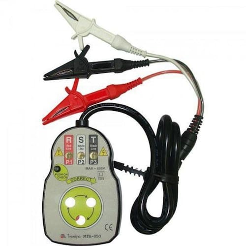 Dados Técnicos: Peso da Embalagem: 0,540 KgIndicador:Rotação de Disco (seqüência de fase). LEDs (fase aberta). - Garras Jacaré Grande: Pode facilmente envolver os terminais do painel de controle a ser testado.