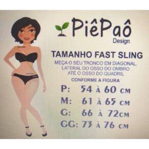 O fastsling é uma marca registrada exclusivo da PiêPaô. O fastsling carregador ergonômico, sem amarrações, nós, argolas e nada de fivelas, super leve, prático, fresco, fácil de usar e que cabe em qualquer cantinho da sua bolsa. Com ele, o bebê fica junto do seu corpo e é ótimo para o período de cólicas e refluxo. Tenha sempre o FastSling à mão, ele te salva dos chororôs e te ajuda a ninar o bebê em qualquer lugar. Com o FastSling PiêPaô, você mantém o contato corporal, estimulando a amamentação, promovendo a postura ergonômica para você e para o bebê, permitindo seu desenvolvimento natural e saudável.