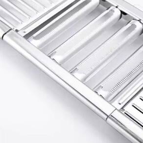 Este cortador de vegetais é ajustável e corta grandes quantidades rapidamente, sem esmagar. Perfeito para abobrinhas, batatas, cenouras, repolho roxo, ervas, pimentões, saladas, outros vegetais e frutas de forma rápida e eficiente na cozinha.