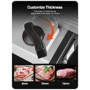 Para ser um chef O cortador de comida corta a comida com precisão, faz você parecer um BOM chef em casa. Espessura ajustável de super fino a aproximadamente 10 de espessura para cortar vários alimentos, como carne, frios, queijo, rosbife, peito de peru, legumes e frutas. Fácil de limpar recursos sem costura e removíveis facilitam a higienização. Nossa tampa de proteção de anel removível evita o acúmulo de detritos nas superfícies de corte. A lâmina, o carrinho de alimentos, a extensão da haste deslizante e o empurrador de alimentos são removíveis, permitindo uma limpeza e higienização completas. Proteção de segurança para operar o fatiador de delicatessen, você deve pressionar a trava de segurança e o botão liga , desliga simultaneamente para iniciar, evitar a operação de erro. Os pés de ventosa antiderrapantes mantêm o fatiador de carne estável durante o trabalho. Lâmina de aço inoxidável universal a máquina de fatiador de carne ostba possui a lâmina serrilhada de aço inoxidável de , acionada por 150 watts de poder de corte rápido e de alto rendimento, ajudará você a manter um corte afiado consistente Marca: Não Informado
