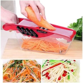 A Mandoline Slicer Nicer, com suas diversas funcionalidades, é um utensílio essencial para sua cozinha, permitindo preparar uma variedade de alimentos de forma rápida e eficiente. Com suas lâminas afiadas em aço inoxidável, você pode cortar, fatiar e picar uma variedade de vegetais e frutas, incluindo cebolas, pepinos, tomates, batatas, cogumelos, queijos e muito mais. Aqui estão algumas características e benefícios deste produto:Versatilidade 7 em 1: Esta mandolina oferece várias funções em um único utensílio, incluindo fatiar, cortar em cubos, picar e ralar, proporcionando-lhe uma ampla variedade de opções para preparar seus pratos favoritos. Rápido e Eficiente: Com o Mandoline Slicer, você pode preparar saladas e cortar legumes em segundos, economizando tempo e esforço na cozinha.Precisão no Corte: As lâminas afiadas garantem cortes precisos e uniformes, resultando em uma apresentação impecável dos alimentos.Fácil de Limpar: Este utensílio é fácil de limpar, podendo ser lavado à mão com água ou até mesmo colocado na máquina de lavar louça para uma limpeza rápida e conveniente.Seguro de Usar: Possui uma tampa de segurança que permite pressionar os alimentos de forma segura contra as lâminas, evitando cortes acidentais. Além disso, conta com uma dispenser que facilita o corte e o servimento dos alimentos. Design Ergonômico: O design ergonômico torna o uso deste utensílio confortável e fácil, proporcionando uma experiência agradável ao preparar suas refeições.Com a Mandoline Slicer Nicer, você poderá desfrutar de alimentos cortados de forma precisa e rápida, trazendo praticidade e eficiência para suas preparações culinárias do dia a dia. Medidas: 11 X 30 X 10 CM OBS: COR ENVIADA ALEATÓRIA, NÃO SENDO POSSÍVEL ESCOLHER